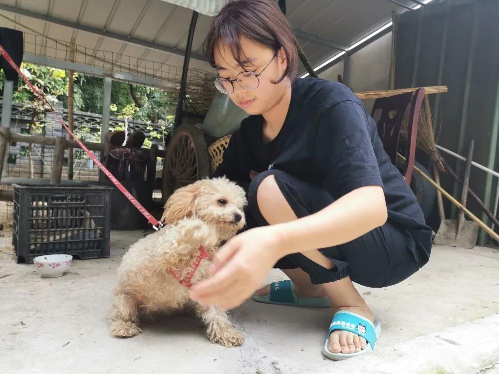 院子里有条欣雨爸爸捡回的流浪狗,取名“馒头”。“馒头”特别喜欢往李欣雨怀里钻。李欣雨抱着它,眼睛看向远方。