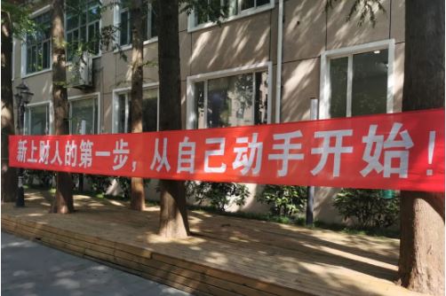 独自办完所有的手续,新生们拿起抹布、铺好床单、打理好生活所需,用自己的劳动开启全新的大学生活。“新上财人的第一步,从自己动手开始!”