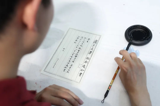 作为通知书正文的书写者,公共卫生学院教授、中国书法家协会会员高翔根据通知书整体设计风格,选定了偏向君子书风的小楷字体。磨墨注水、蘸墨试纸、泼墨挥毫……虽只执笔四十七个小楷,但字字都寄托着对新生的祝愿。