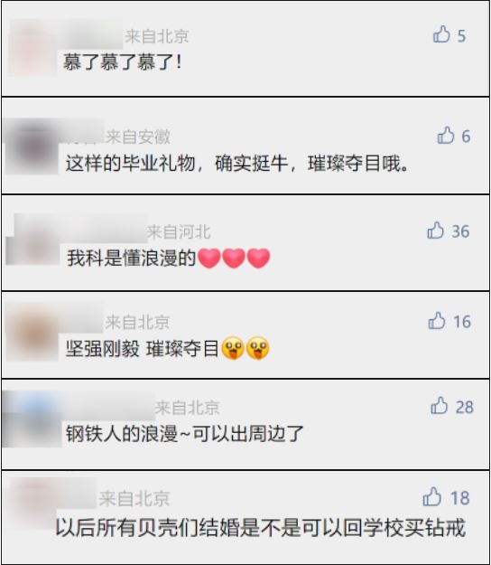 毕业生能收到钻石毕业礼物,令人羡慕,网友纷纷为学校及科研团队点赞: