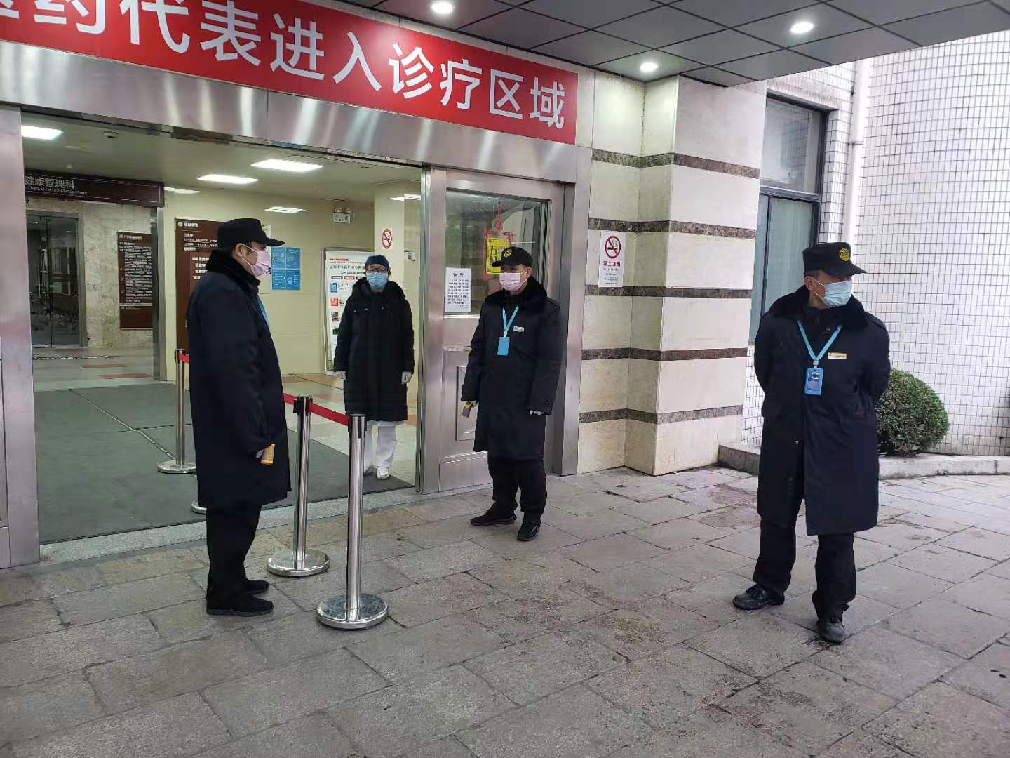 ▲市一医院安保人员严阵以待