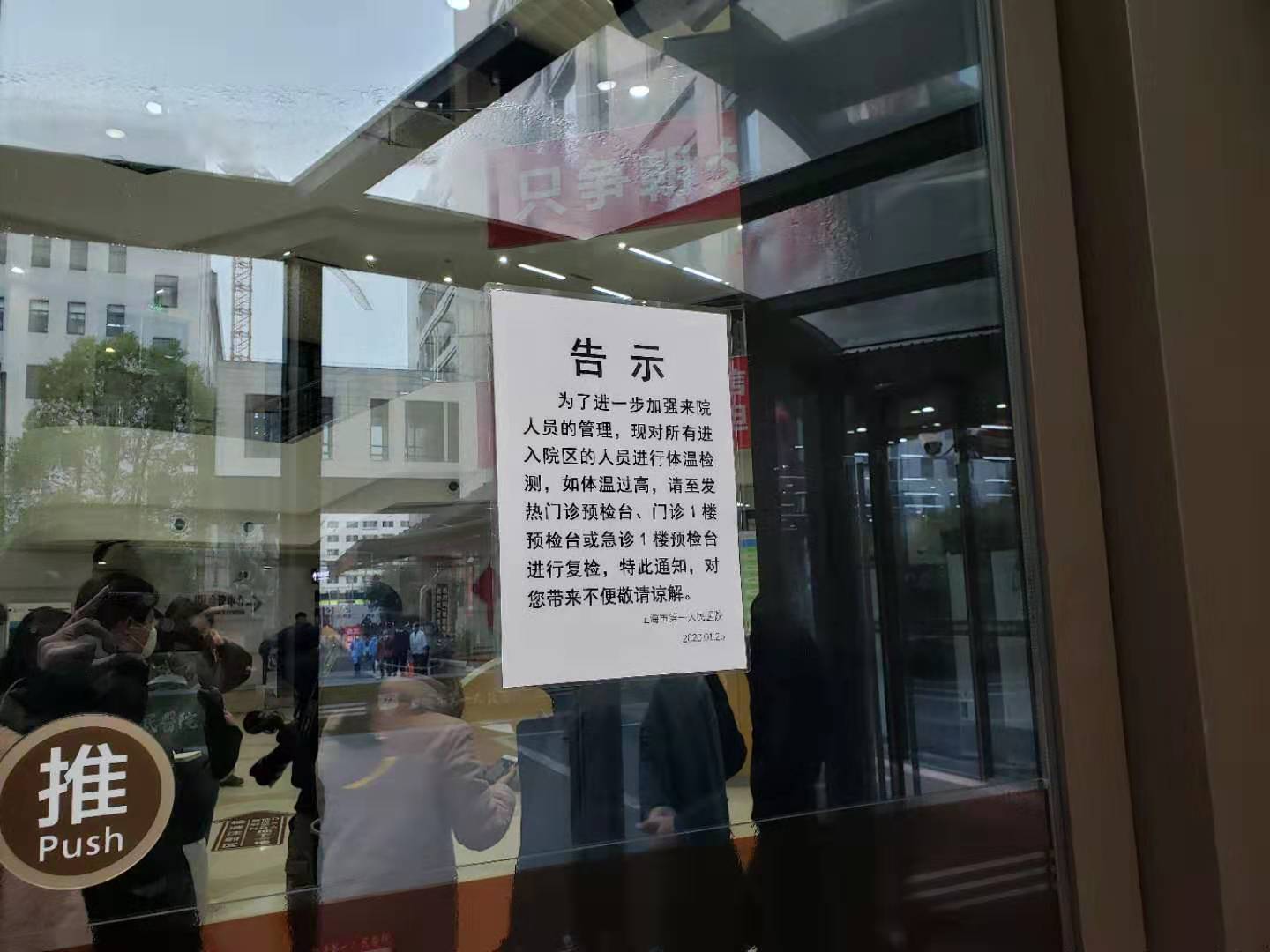 “您好,请配合检查体温。”今天是上海市第一人民医院春节期间首个门诊日,不只是医护人员,安保人员同样严阵以待。