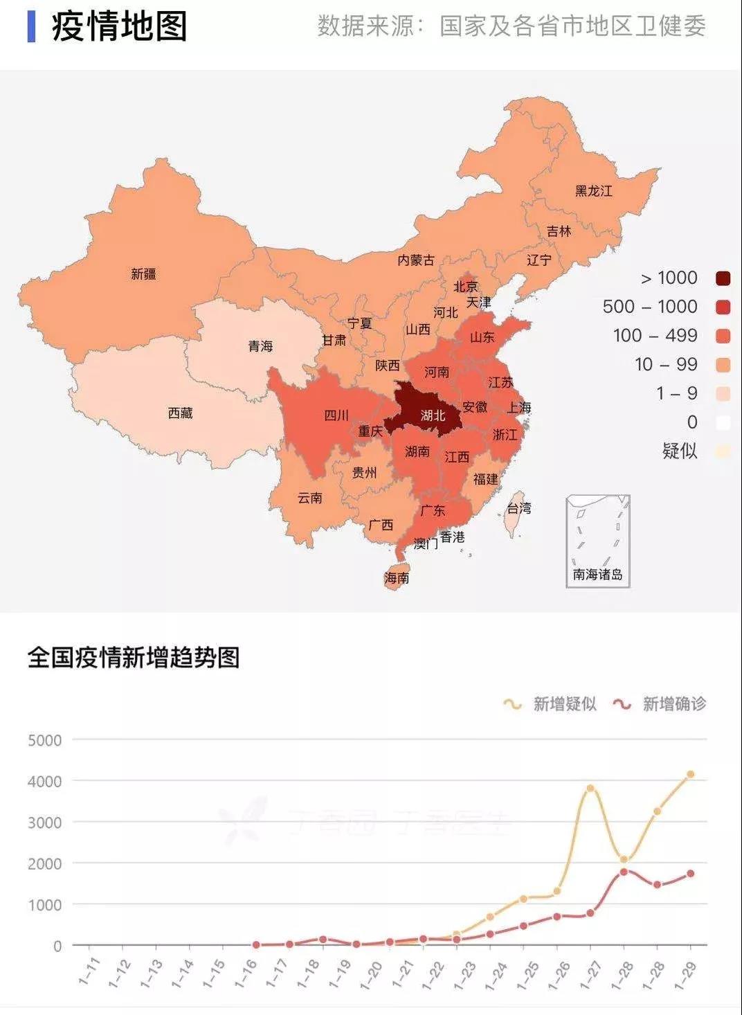 今日新冠病毒疫情:1月29日0-24时,31个省(自治区、直辖市)和新疆生产建设兵团报告新增确诊病例1737例(西藏首例确诊病例),新增重症病例131例,新增死亡病例38例(湖北37例、四川1例),新增治愈出院病例21例,新增疑似病例4148例。