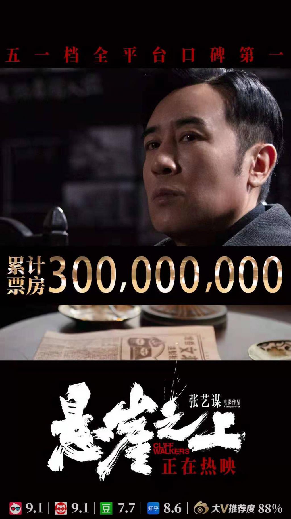 截止发稿时,《悬崖之上》的票房已过3.4亿,五一档过半,它开始非常具有后来者居上的苗头。