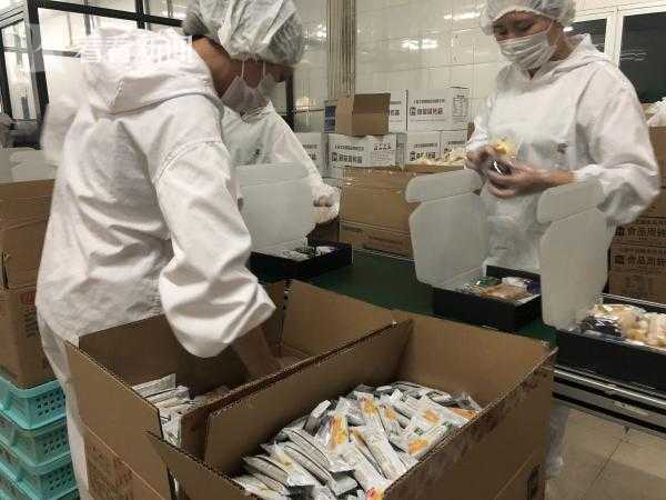 在牛奶棚食品厂,增派的十五名专门负责应急备餐的员工,正在流水线上把每份餐食逐一打包、装盒、入箱。