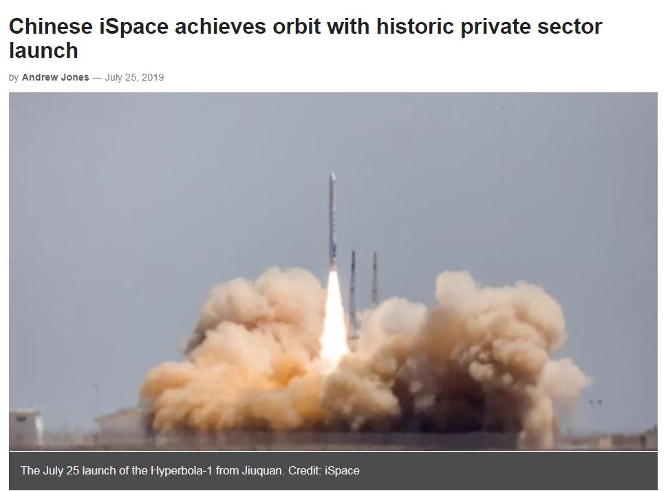 在“双曲线一号”成功问鼎苍穹后,英国路透社第一时间进行了报道,称在两次尝试失败后,中国民营运载火箭企业首获成功。