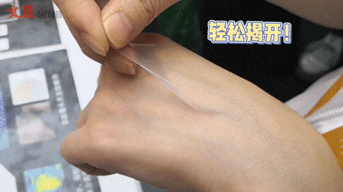 原来,这些直径在 1 微米以下的超细纤维层层重叠,形成薄膜后能轻柔地覆盖于肌肤表面,随肌肤张弛而动,使肌肤表面变得细滑。不仅如此,薄膜越接近边缘厚度越薄,薄膜与肌肤之间几乎完美过渡,因而不易脱落,与肌肤自然贴合,看不出界限。想要去除的时候摩擦一下边缘,就能轻松揭开!