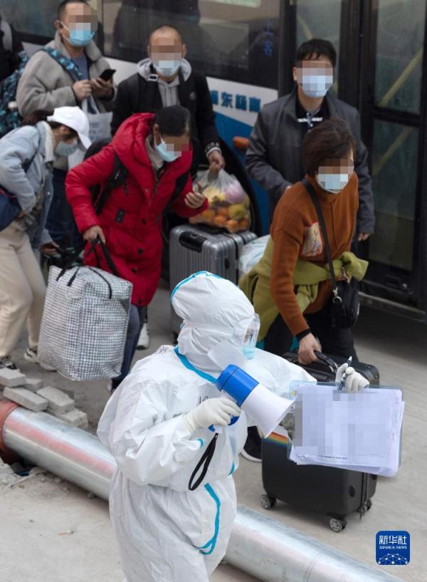 4月6日,在上海临港方舱医院,一批新转运来的感染者即将入住接受治疗。(华山医院 供图)
