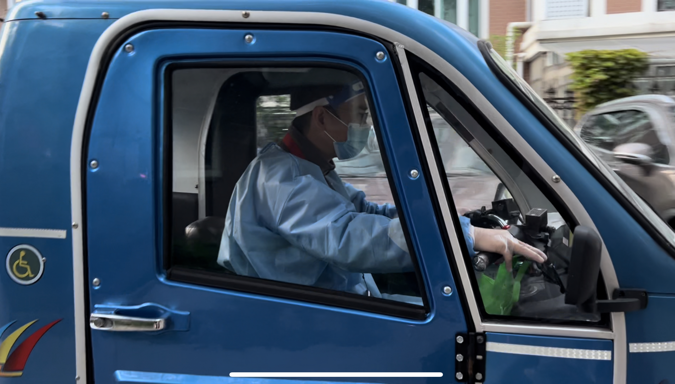 陈烨肢体有残疾。小区封闭后,他立马报名当志愿者,并且表示,自己的残疾车能装很多东西,他愿意“贡献”出来,把它变成各类物资的运输车。